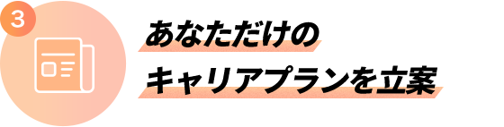 今の現状をしっかり分析し、今後の課題を浮き彫りにすることで、あなただけのキャリアプランを立案します。