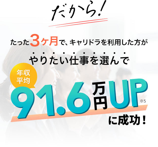 ※5:キャリドラ受講開始後に転職先が確定した直近30人の平均年収アップ金額 (2022年2月1日時点)