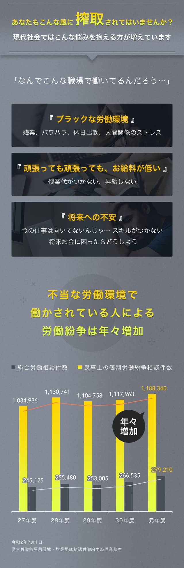 毎回、入社する所がブラック企業ばかりで、自分で職業を選んでいくことが不安でした。
